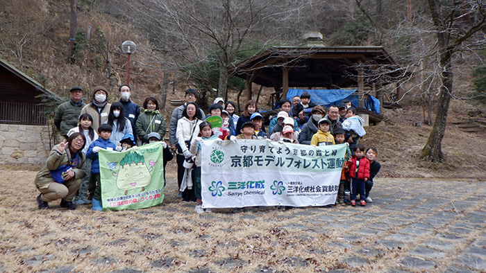 We have been conducting the Sanyo Chemical Forestry in Wazuka Town, Soraku District Kyoto Prefecture since FY2009 (the 60th anniversary of our founding) as a part of the Kyoto Model Forest Initiative. Conducted by Kyoto Prefecture, the initiative seeks to protect and nurture Kyoto's forests together with Kyoto citizens who have been benefited from the forest's bounties. These activities to protect the local environment have been continuously supported by the Sanyo Chemical Foundation for Social Contribution established in 2019.