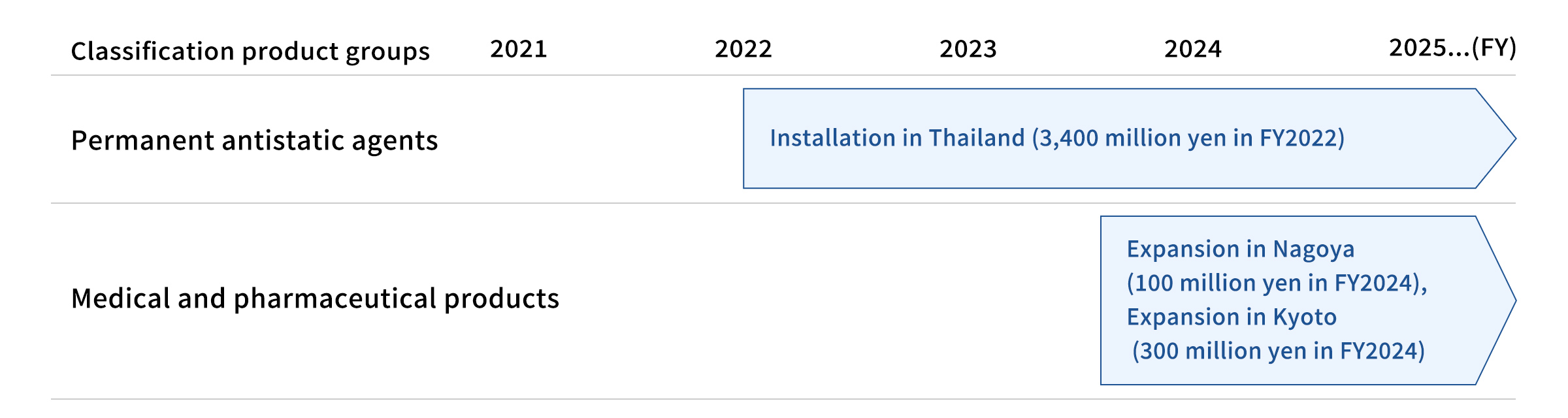 In our New Medium-Term Management Plan 2025, we have positioned products that contribute to carbon neutrality and improved quality of life as high value-added products, and are planning aggressive capital investment for FY2021-FY2025. QOL Performance Chemicals support one of three areas of contribution—“healthcare,” “food security,” and “a comfortable life”—and targets have been set for each product.