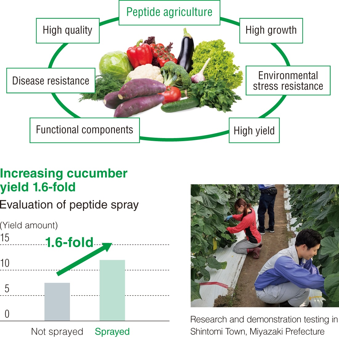 | Contribution to solving food security | Stable supply | Peptides for Agriculture (Japanese only), land-based aquaculture peptides | |