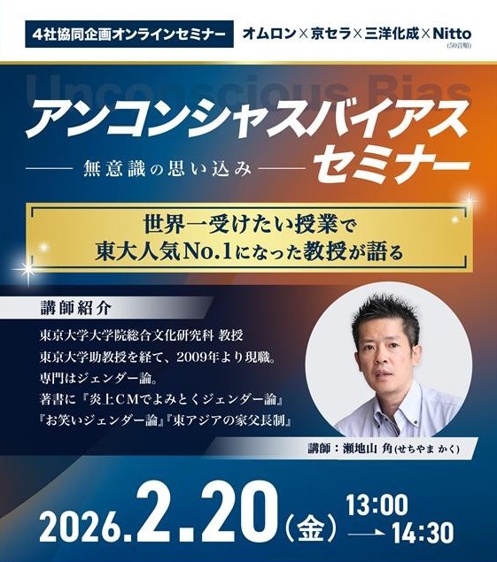 三洋化成は、2月20日、DEI推進イベントの一環として、オンラインセミナー「アンコンシャスバイアス ~世界一受けたい授業で東大人気No.1になった教授が語る~」を、オムロン㈱、京セラ㈱、日東電工㈱との4社協同で開催しました。