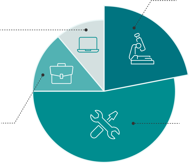 グループ人員の約2割を研究開発が占めており、日々の開発活動を通じて、1日約1件のペースで特許出願をしています。
