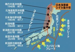 今後は、能登半島の東側から北へ延びて新潟・秋田・北海道沖を通る「日本海東縁ひずみ集中帯」で起こる地震・津波に警戒し、太平洋側と同様の発生予測と防災対策に注力する必要があるのです。