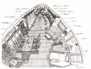 社長に向けたプレゼンテーションでは、大会議場のテーブルに絵をびっしりと並べるんです。映像でプレゼンをしても相手の記憶に残らないので、僕は使いません。自分で描いた絵には物語が入っているので、それがいかに楽しいかを一つひとつ言葉で相手に伝えていきます。そうすると、社長が自然と、「これが必要だ」と感じた絵を手に取ってくれます。細かい要望も出てくるので、絵を見て相談しながら、デザインを完成させていくのです。模型も作ったことはありませんよ。立体を作ると、できた気になってしまいますが、それは本物ではありません。最後まで安心してはいけないのです。僕は小さなビスまで絵に描きます。